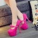 16CM夜店超高跟单鞋走秀性感蝴蝶结女鞋细跟防水台磨砂浅口粉色鞋