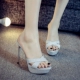 14cm超高跟细跟单鞋2017夏季新款水钻女鞋防水台蝴蝶结性感鱼嘴鞋