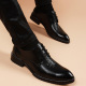 男士休闲皮鞋男韩版系带尖头商务青年英伦潮流内增高布洛克皮鞋男