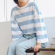 2017韩版宽条纹宽松大码圆领九分袖学生竹节棉纯棉t恤女春季上衣