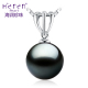 海润珍珠 18K金海水珍珠吊坠珍珠项链 单颗正圆黑珍珠 送925银链