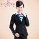 职业装女装套装工服三扣韩版藏蓝色商务西装酒店前台经理制服套装