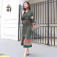 2017新款明星同款名媛小香风蓬蓬裙绿色欧根纱连衣裙女夏气质甜美