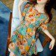 2017春新款女装名媛复古民族风V领荷叶边鱼尾碎花长款棉麻连衣裙