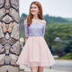 2017夏季新款甜美淑女气质蕾丝无袖连衣裙女高腰A字欧根纱蓬蓬裙
