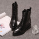 马丁靴女英伦风侧拉链尖头内增高短靴女春秋粗跟系带单靴中筒靴女