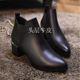 靴子女真皮英伦风尖头黑色秋冬短靴女欧美粗跟短筒裸靴切尔西靴女