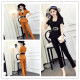 新款时尚公主气质名媛V领交叉短袖上衣+九分裤套装礼服女装送腰带