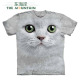 美国进口 The Mountain 绿眼猫咪图案可爱白色欧美范打底短袖T恤