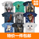 美国the mountain纯棉创意萌猫圆领扎染打底女短袖印花情侣T恤