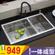 品加 304不锈钢水槽一体成型加厚双槽洗菜池 手工拉丝洗菜盆套装