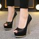 秋季14cm高跟浅口单鞋亮片防水台性感细跟欧美夜店职业鱼嘴女鞋子