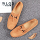 大码男鞋春季潮鞋韩版青年男士休闲鞋反绒皮懒人鞋子真皮豆豆鞋男