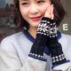 真细真 半指针织手套女秋冬季可爱毛线露指雪花学生棉打字保暖
