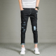 2017夏季 青少破洞九分牛仔裤小脚裤潮男生修身9分裤补丁