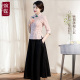 2017新款春中袖旗袍上衣套装改良连衣裙少女长款民国风旗袍裙冬款