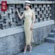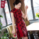 婉蝶年会聚会改良旗袍连衣裙2017新款春短款修身短袖时尚旗袍裙女