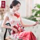 舞台走秀长款修身旗袍连衣裙春款2017新款红色短袖夏装旗袍裙夏女