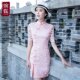日常短款少女显瘦连衣裙夏粉色时尚改良短款宴会修身性感旗袍夏装