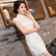 2017春装新款时尚水溶蕾丝旗袍连衣裙复古优雅修身立领改良短旗袍