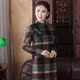 旗袍裙2016新款秋冬女士日常改良毛呢格子中长款长袖旗袍连衣裙