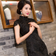 2016秋冬新款长袖改良旗袍裙礼服短款黑色复古镂空蕾丝旗袍连衣裙
