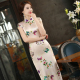 旗袍2017夏装新款中式刺绣荷花修身长款连衣裙无袖改良时尚礼服裙