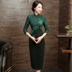 玲珑品智妈妈装冬旗袍 2016新款墨绿女士长款长袖毛呢旗袍裙Q1760