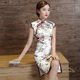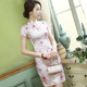 玲珑品智旗袍裙 2015春新款改良时尚妈妈装桑蚕丝短款旗袍Q1055