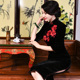 玲珑品智低领2017新款旗袍女短款短袖桑蚕丝复古改良连衣裙Q1586