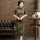 玲珑品智香云纱中长款旗袍裙中袖2017新款妈妈旗袍改良大码连衣裙