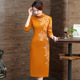 玲珑品智妈妈装短款秋装 2017新款复古桑蚕丝旗袍修身连衣裙Q1080