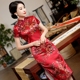 玲珑品智改良旗袍裙中式结婚礼服婚宴中年旗袍 妈妈装 大码Q1904