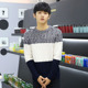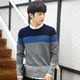 2016秋季新款韩版潮男士休闲百搭针织衫拼色圆领长袖衫男生修身