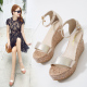 2017夏季新款女鞋凉鞋真皮坡跟厚底高跟鞋防水台松糕跟鱼嘴鞋潮鞋