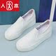 人本女鞋春松糕跟厚底乐福鞋超纤内增高一脚蹬学生平底小白鞋女潮