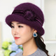 中老年春秋季新款毛呢帽子女时尚花朵盆帽妈妈老人奶奶冬天礼帽