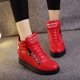 韩版内增高女鞋休闲运动坡跟百搭时尚秋冬加绒厚底高帮鞋女