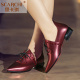 思卡琪 深口单鞋女系带尖头粗跟铆钉鞋子2017春季新款大码女鞋