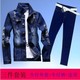 春秋季韩版修身牛仔外套男青少年破洞休闲牛仔夹克男牛仔裤套装男