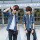 秋冬季男士牛仔外套男韩版休闲牛仔夹克破洞修身款日系复古牛仔褂