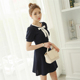 纽斯雅2017夏季新款韩版女装收腰修身显瘦时尚大码拼接短袖连衣裙