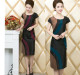 2017新款真丝香云纱旗袍短袖改良中长款 中老年女装妈妈装婚礼装