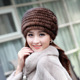 冬季帽子女皮草韩版潮 獭兔毛 毛线帽围巾中老年真皮护耳老人帽