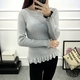 秋冬花边打底紧身一字领毛衣女上衣套头休闲显瘦保暖针织薄打底衫