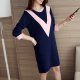 撞色元素孕妇圆领中长款拼色宽松针织套头毛衣韩版孕妇打底衫秋冬