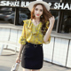 2017春装新款韩版女装修身显瘦衬衫领单排扣长袖雪纺衫女士上衣