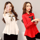雪纺衫女长袖2017春夏新款学院风韩范衬衫娃娃领印花修身打底上衣