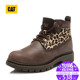 CAT卡特女鞋牛皮豹纹拼接中帮系带户外休闲短靴P308975F3BDR39