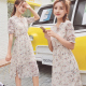 实拍系带收腰碎花雪纺连衣裙女夏季新款显瘦薄款中袖中长款A字裙